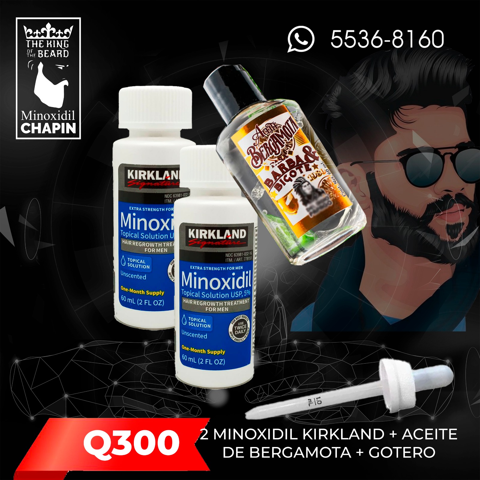 2 Minoxidil Kirkland + Aceite de Bergamota + Gotero